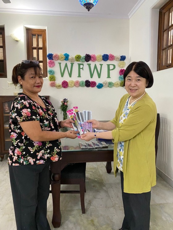大阪第7連合会からいただいた品質の良い日本製品の支援品をスタッフに手渡した際は、大変喜ばれました。温かいご支援、本当にありがとうございます。