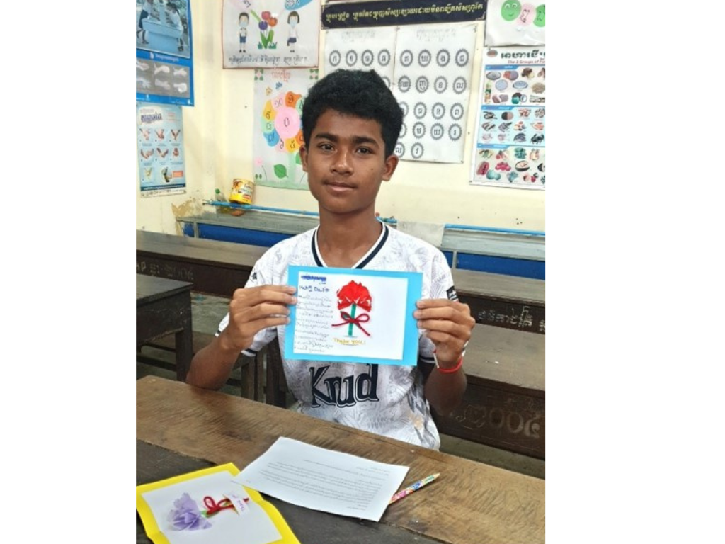 「将来はカンボジアの人々を守るために警察官になりたいです。皆が平和に暮らせるように働けたら嬉しいです。お母さん、ありがとうございます。元気で、長生きしてください」