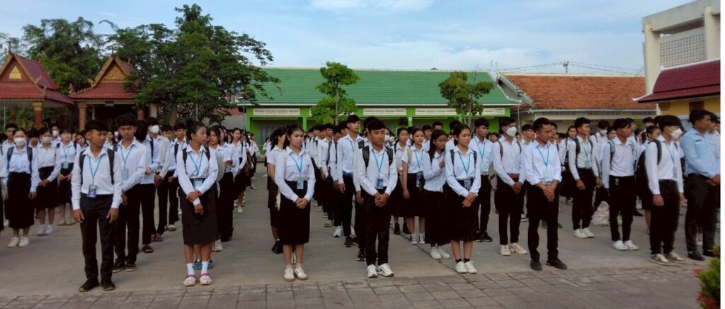 コンポンスプー高等学校11年生400人、ソカ・パリー高等学校10~11年生200人、合計600人が参加。政府行政学校(RSA)副学長ソク・センヤン氏による「社会人基礎力」の講義(*)がありました。