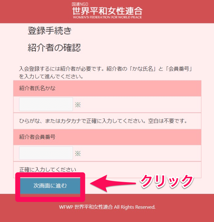 4. 紹介者の名前を空白なしでひらがなもしくはカタカナで入力し、会員番号を入力してから次画面に進みます
