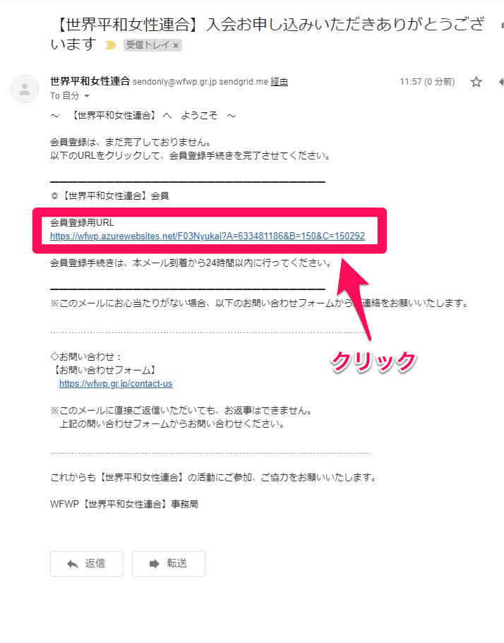 3. 登録したメールアドレス宛にきたメールを開き、会員登録用URLをクリックします