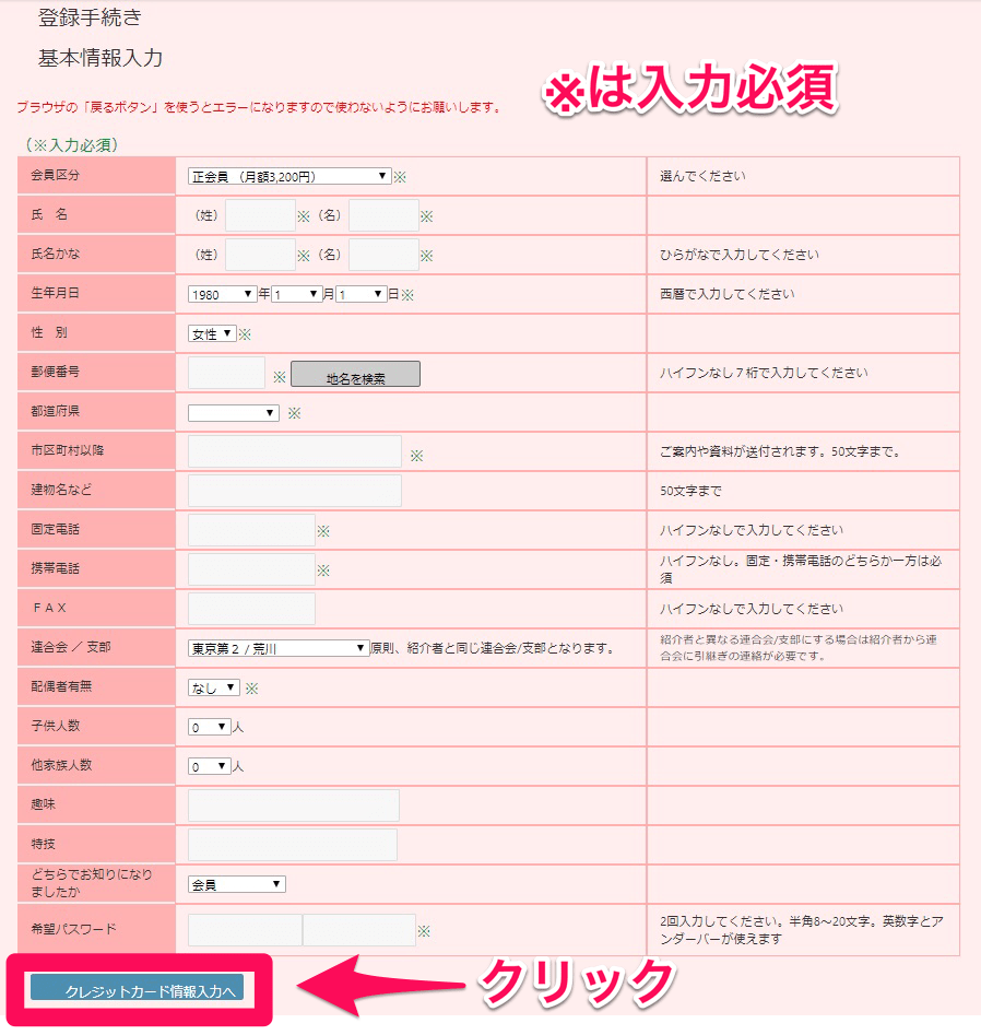 1. こちらのページから「会員になる」ボタンをクリックします