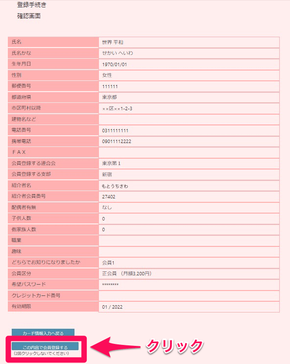 7. 確認画面に間違いがなければ、「この内容で会員登録する」をクリックします
