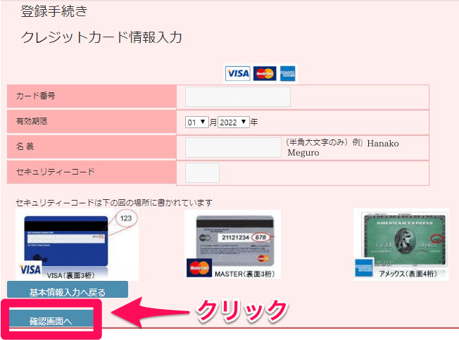 6. クレジットカード情報を入力し、確認画面へ進みます