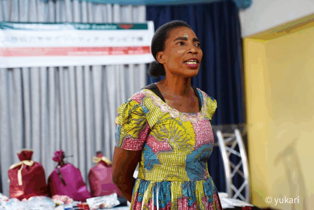 最後は、ファッション・ショーを開催。母親たちがチテンゲ布(アフリカのプリント布)で仕立てたドレスを身にまとい颯爽(さっそう)と歩くと歓声に包まれ、会場が大いに盛り上がりました。