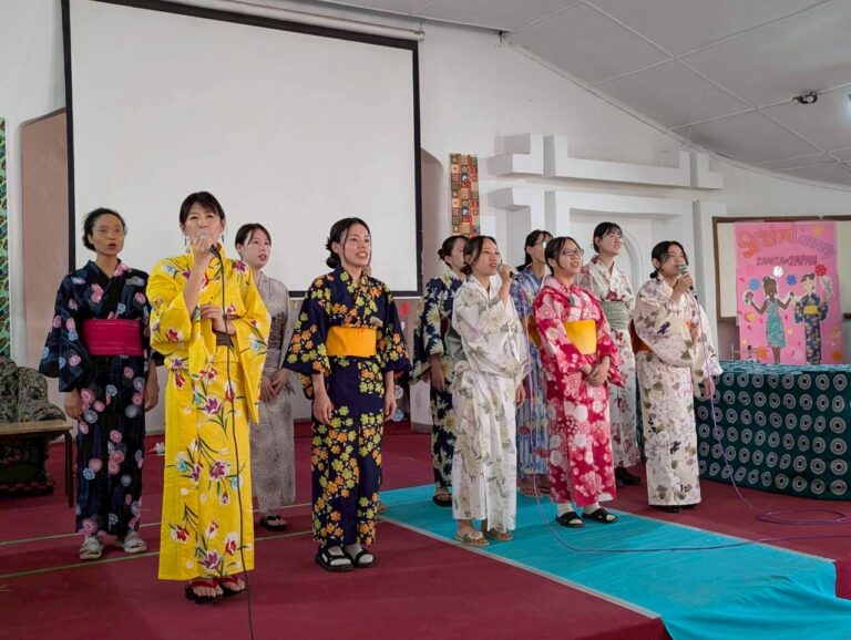 文化交流会は両国の国歌斉唱に始まり、次いで日本から「ふるさと」と「炭坑節」、ザンビアから伝統歌が披露されると、会場は一体となり踊り出しました。