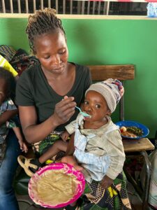 シャロンさんも、フードプロジェクトにより子供が平均体重に達する恩恵を受けました。今は栄養指導教室や洋裁教室のボランティアスタッフとして支えてくれており、厳しい経済状況にも関わらず、訪問者一行にご馳走を準備して温かく迎えてくれました。