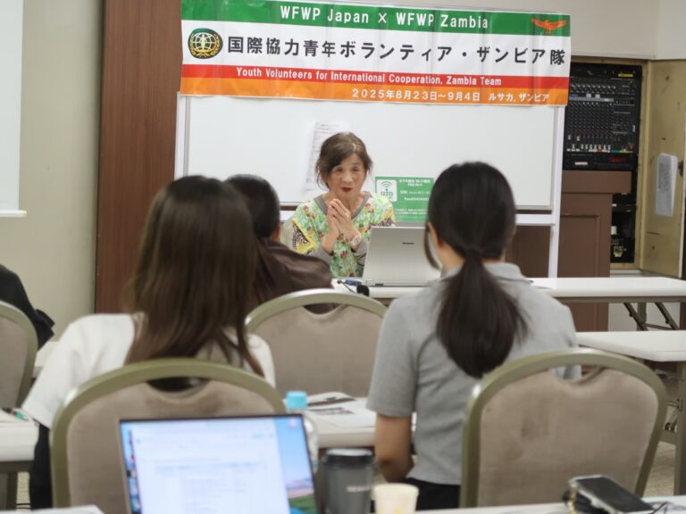 出発前の2日間、事前研修会を実施。WFWPの理念や国際協力について学び、30年以上にわたり活動を続けるザンビア派遣員とも交流しました。