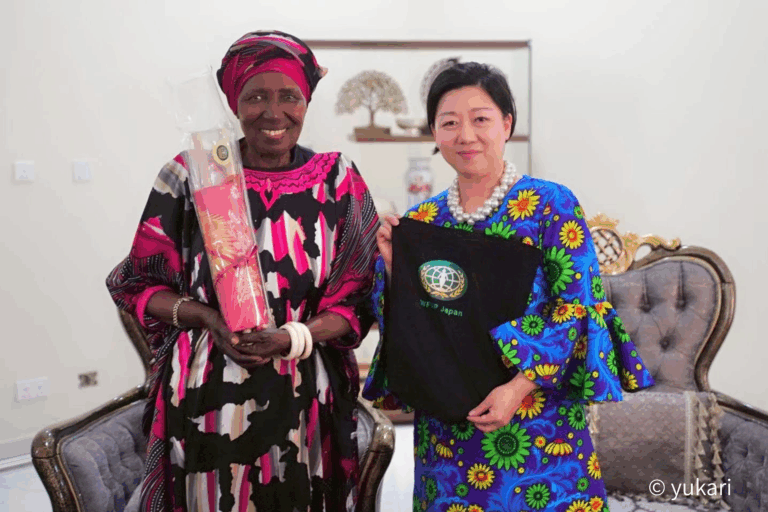 ザンビア元副大統領であり、ジェンダー開発大臣としても活躍されたウィナ氏は、訪問した参加者たちを温かく迎え入れ、このように語りました。そして、「平和をもたらす力は女性の中にある」と強調しました。
